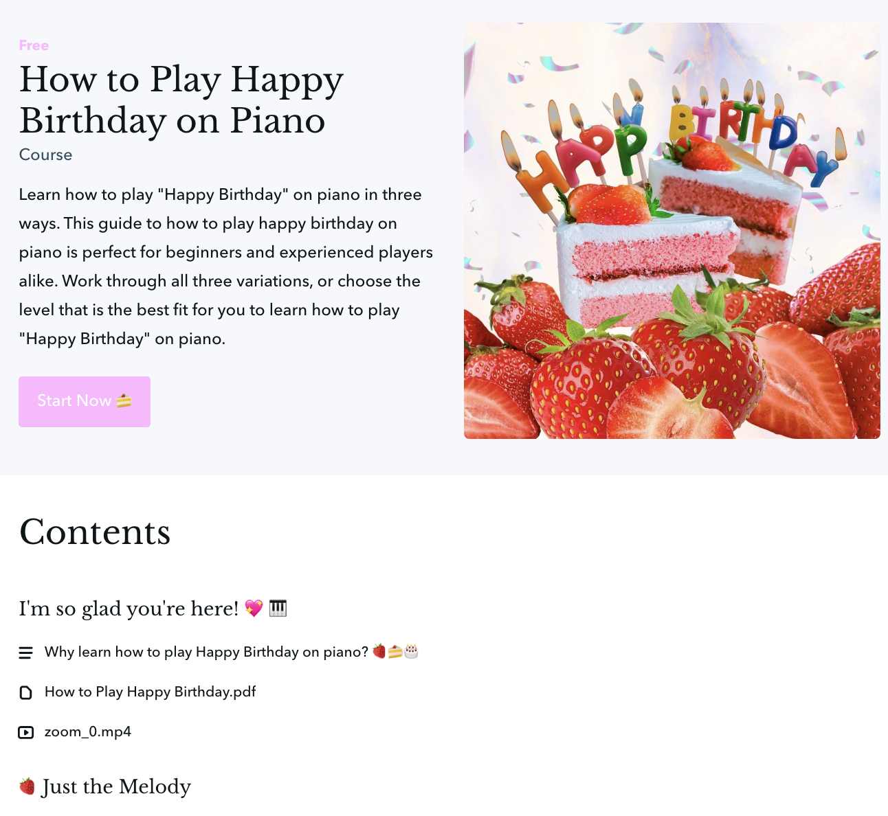 A preview of how to learn “Happy Birthday” on piano for free